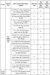 (Thí sinh có thể kiểm tra các chuyên ngành có thể đăng ký chuyển tiếp lên năm 4 trong hướng dẫn tuyến sinh)